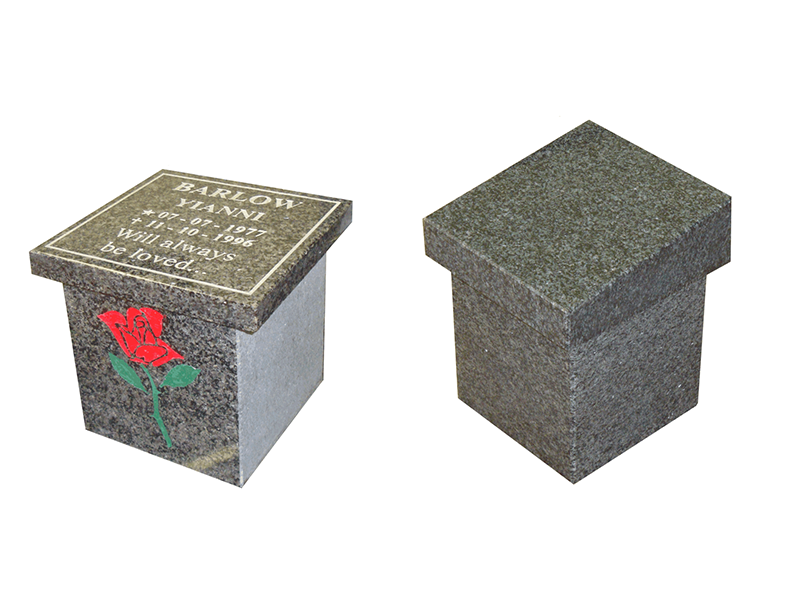 Cremation urns can be place on an existing memorial site with the inscription engraved directly onto the urn. They come in different sizes in marble and granite.